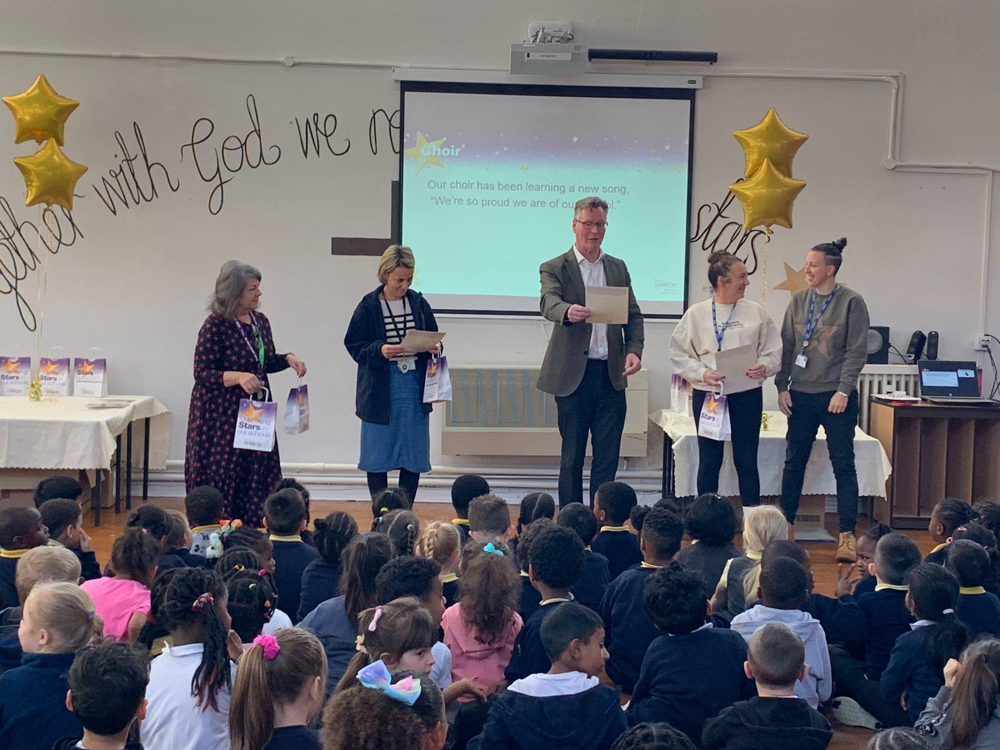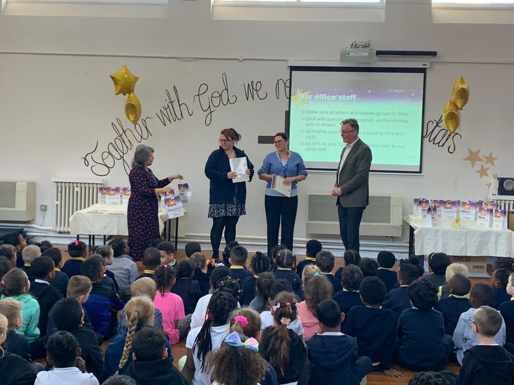 Mr Deane awarded many children from KS1 and 2 with the much coveted golden pens and pencils!